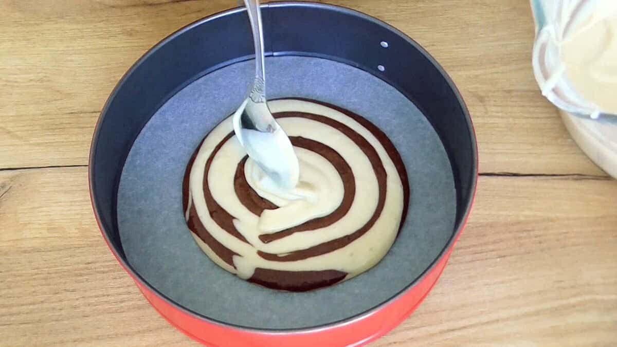 7. Тісто по черзі викладати ложкою в форму, застелену пергаментом