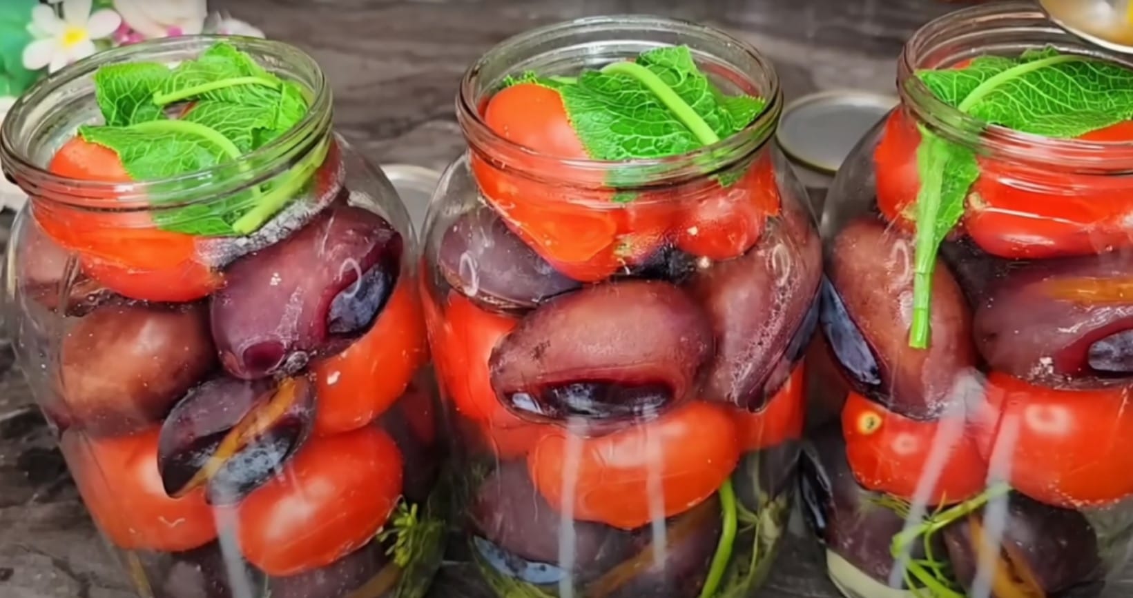Мариновані помідори зі сливами — це цікавий спосіб консервування, що поєднує в собі солодкість слив і кислуватий присмак томатів.