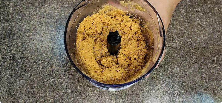 Беремо будь-яке пісочне печиво і подрібнюємо в блендері в дрібну крихту, додаємо вершкове масло і ще раз перемішати.