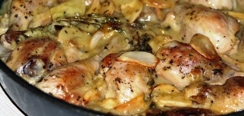 Запечена курочка з картоплею – класика кулінарії. Але і її можна приготувати по-новому і оригінально. Ми пропонуємо вам рецепт, який нагодує всю вашу сім’ю і буде з родзинкою у вигляді сметанному соусі. До речі, виходить дуже недорого.